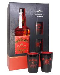 JACK DANIELS TN FIRE W/2 SHOT GLASSES