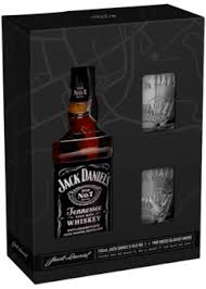 JACK DANIELS OLD 7 BLACK W/2 GLASSES